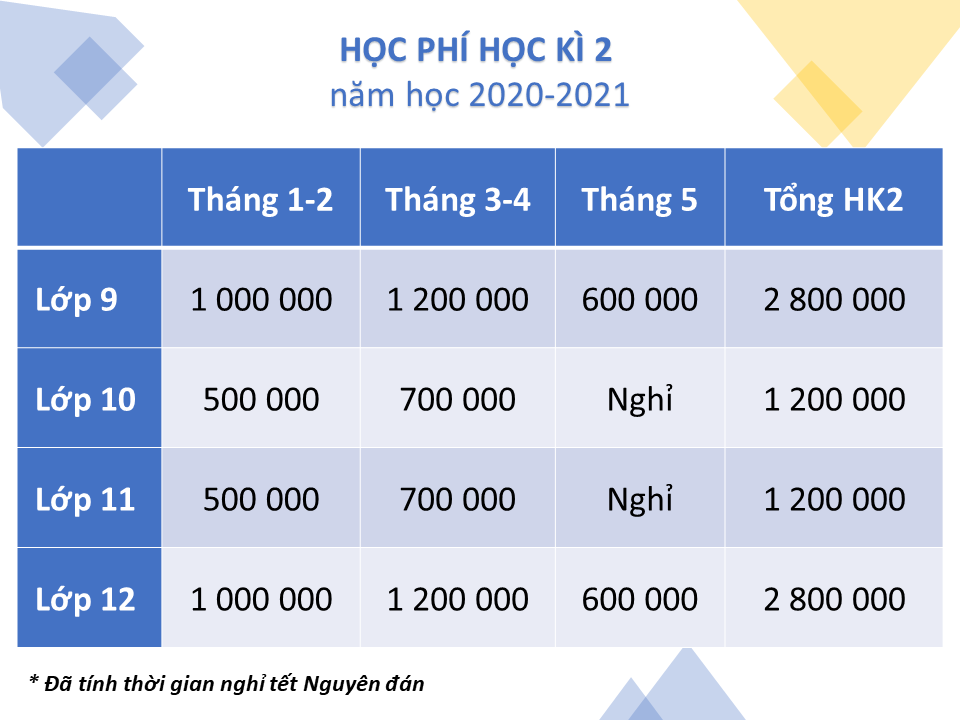 Học phí học kì 2 (NH 20-21) – Thầy Khôi dạy Văn