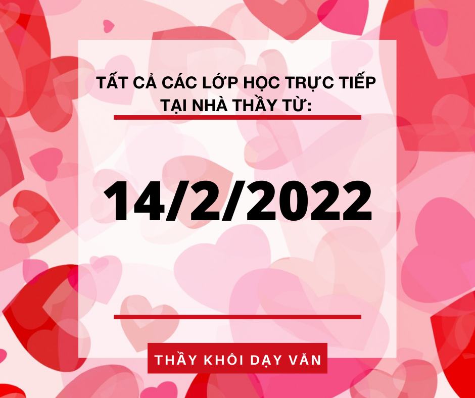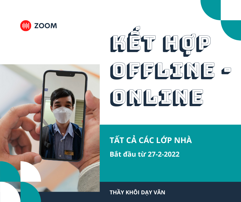 Kể từ 27-2-2022, tất cả các lớp trực tiếp tại nhà thầy Khôi đều sẽ được tổ chức bằng hình thức trực tiếp kết hợp live zoom (với ID và pass như HK 1). Thầy vừa giảng trên bảng, vừa cắm webcam chạy, vừa đeo mic để nói.