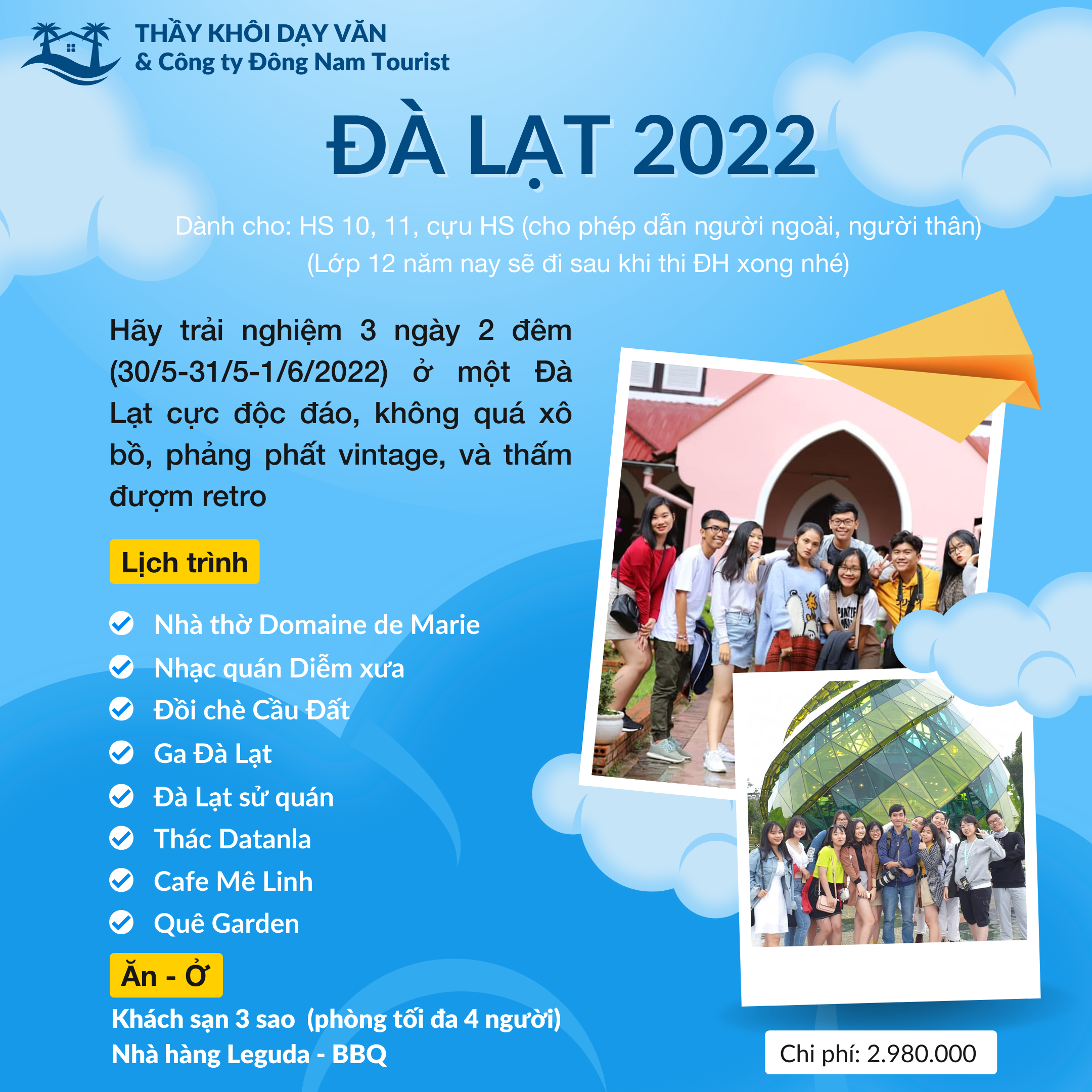 Thầy Khôi dạy Văn kết hợp cùng công ty du lịch Đông Nam Tourist tổ chức chuyến du lịch Đà Lạt năm 2022