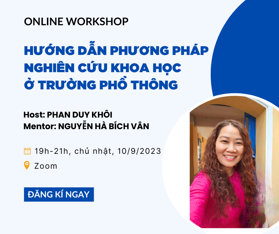 Workshop ngày chủ nhật 10/9/2023 (19h-21h): HƯỚNG DẪN PHƯƠNG PHÁP NGHIÊN CỨU KHOA HỌC Ở TRƯỜNG PHỔ THÔNG