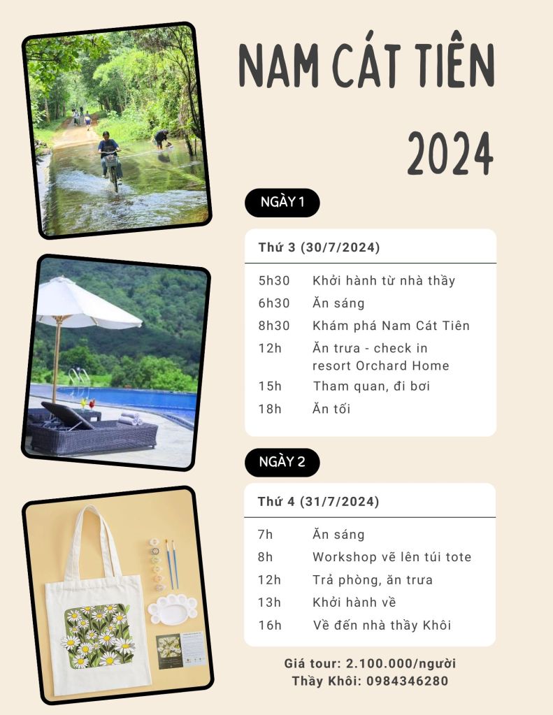 Thầy Khôi tổ chức tour dã ngoại Nam Cát Tiên 2024, dành cho các bạn học sinh đã/đang theo học với thầy Khôi (và bạn bè, anh em)