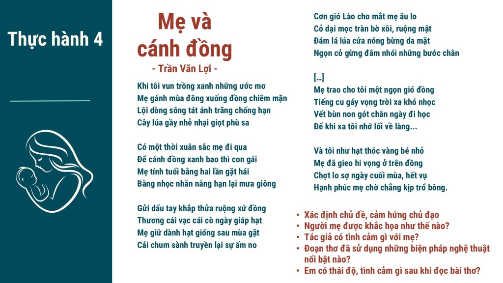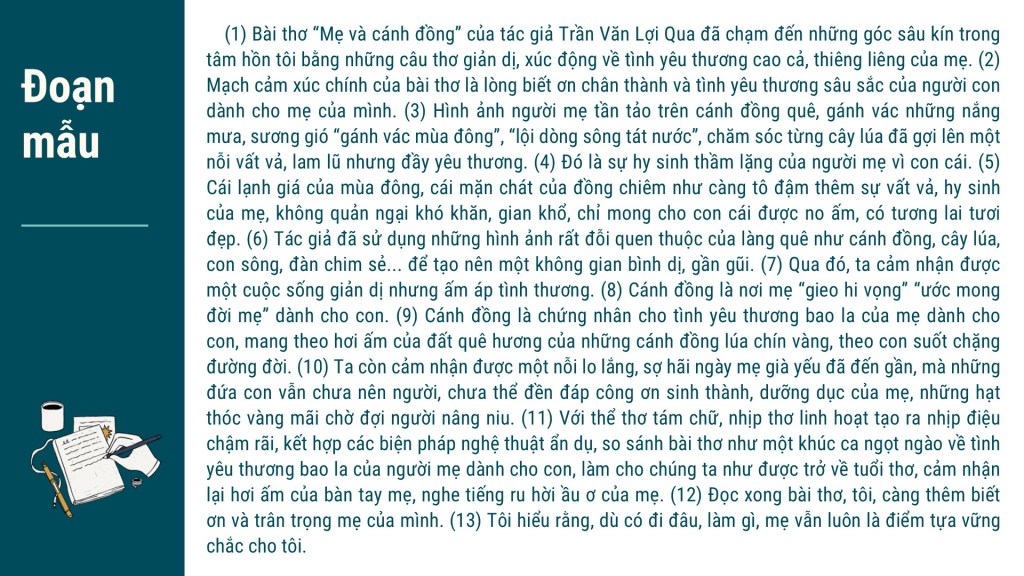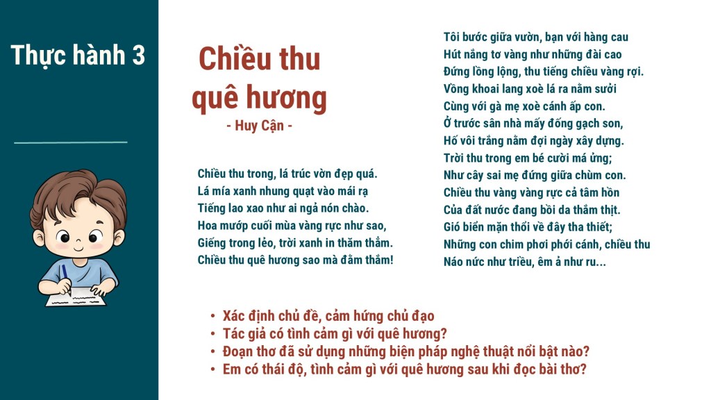 1. CĐ1-Viết đoạn văn cảm nhận bài thơ (Tiếng Việt, Chiều thu quê hương, Mẹ và cánh đồng, Mẹ và quả, Khi con tu hú)