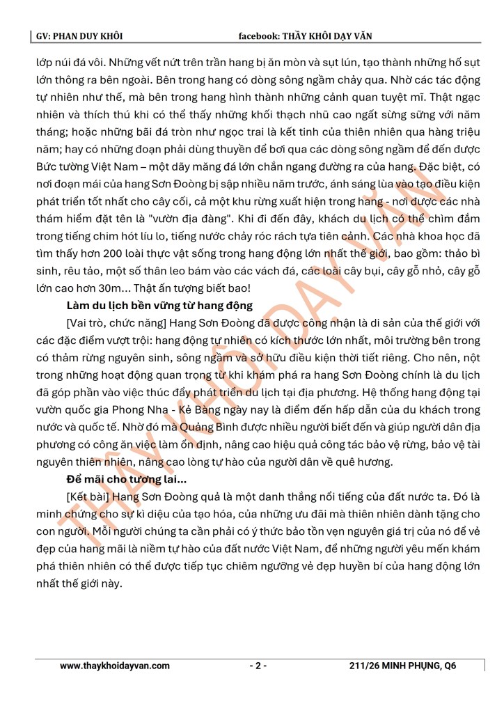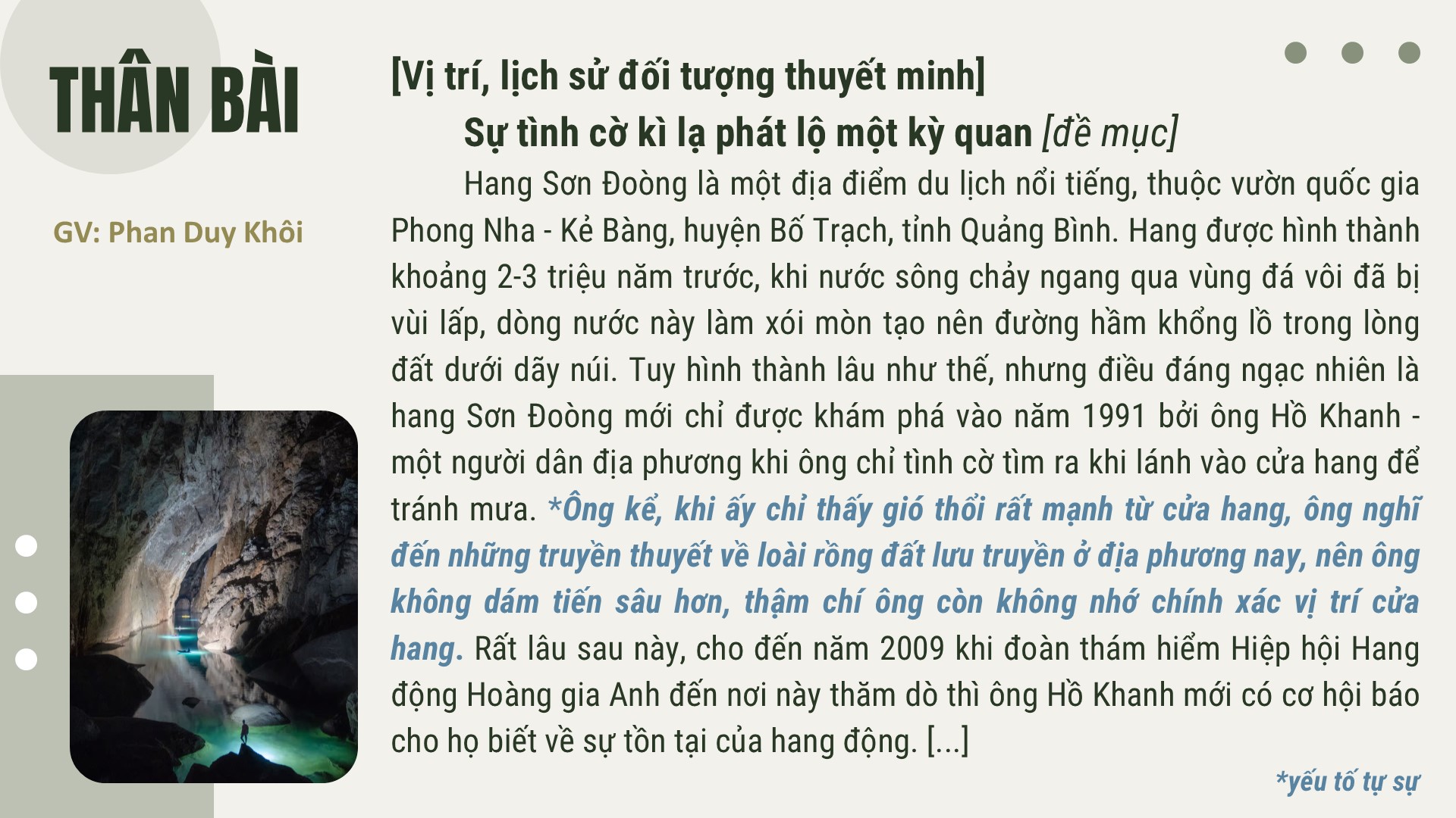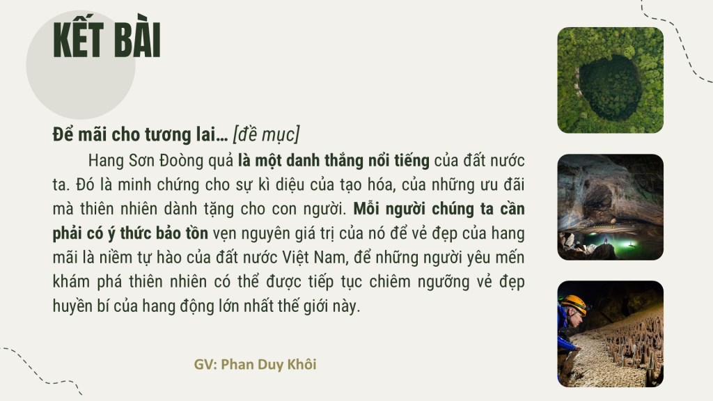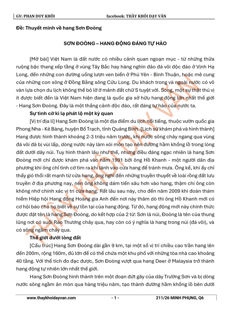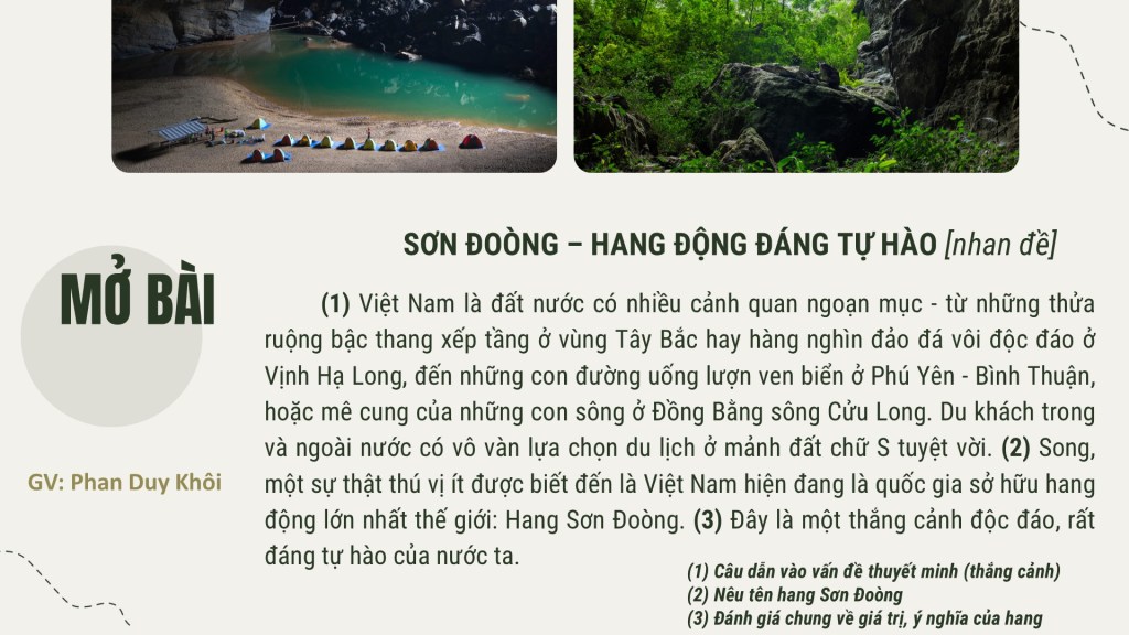 3. CĐ3-Viết bài thuyết minh (Địa đạo Củ Chi, Bến Nhà Rồng, Hang Sơn Đoòng, Vịnh Hạ Long)