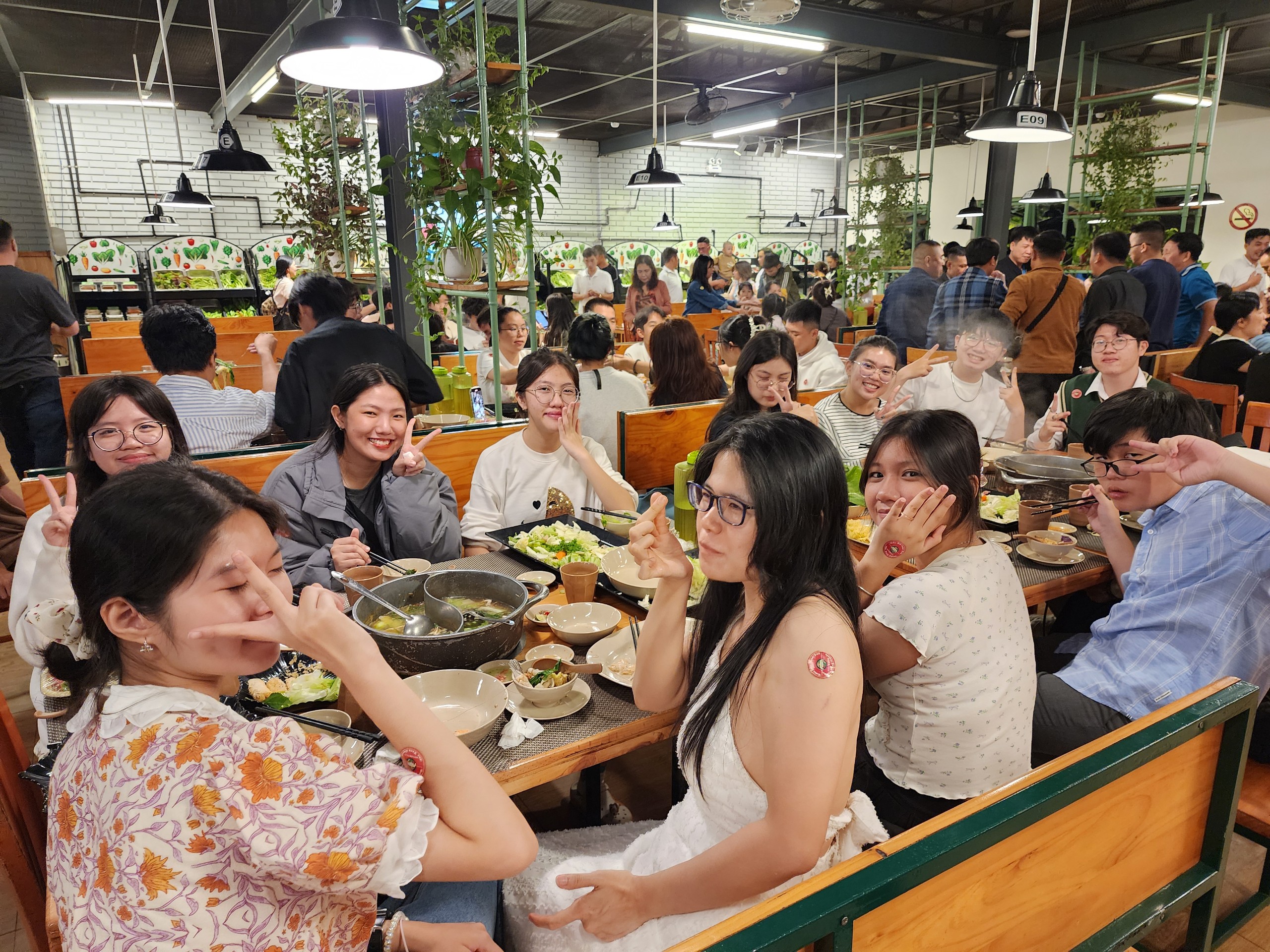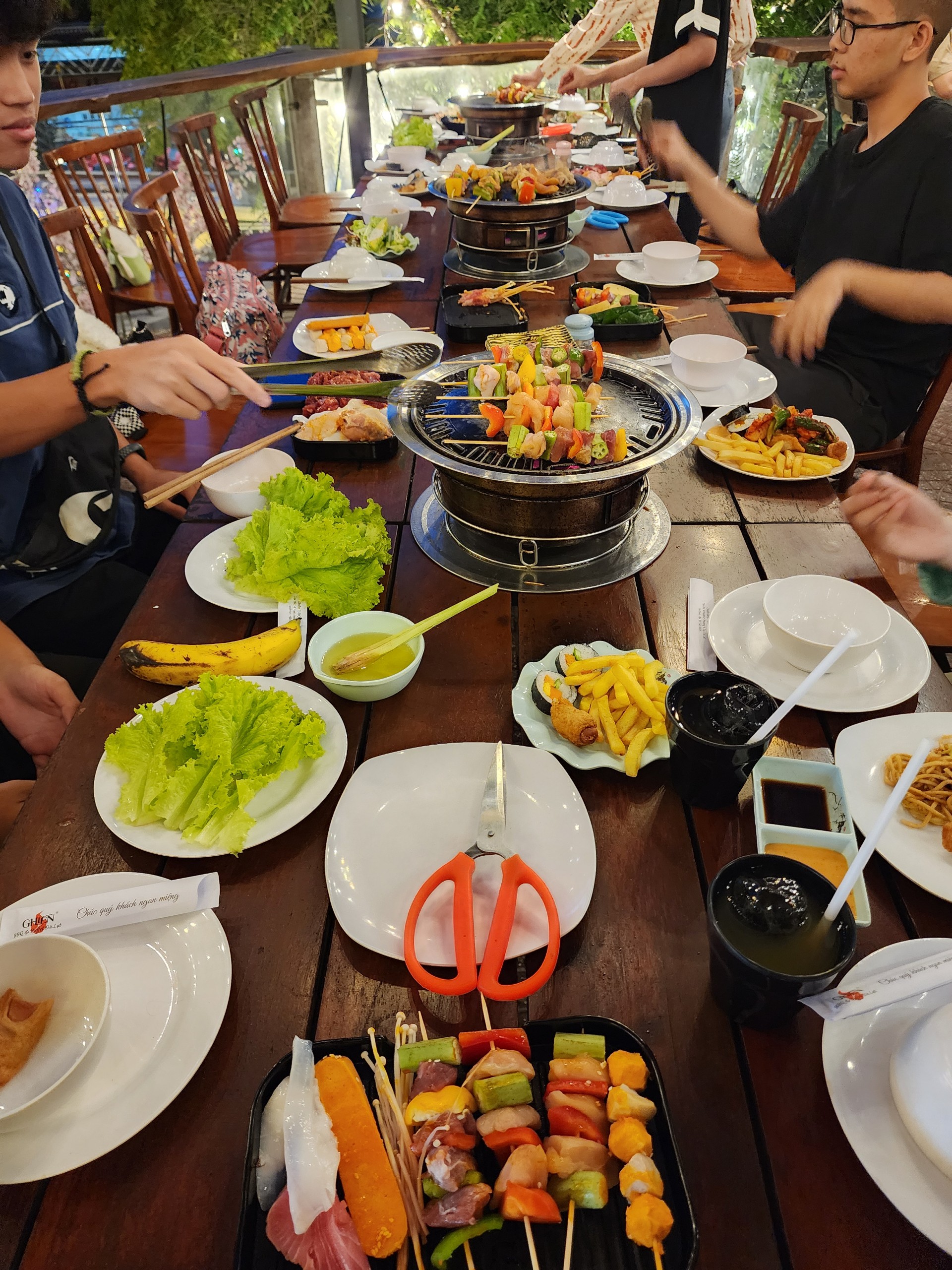 “kiểu thầy Khôi” nghĩa là ăn những chỗ ngon, sạch. Thầy Khôi yêu cầu công ty lữ hành tránh những nhà hàng mà đoàn trường học thường hay đi, mà phải tìm những nhà hàng dành cho khách quốc tế có thể ghé được. Vậy nên chúng ta đã đi ăn buffet nướng ở đường Pauster, ăn lẩu rau Leguda ở ga cáp treo, ăn nhà hàng BBQ đối diện khách sạn Coline, ăn nhà hàng cơm niêu Như Ngọc khu Hồ Tùng Mậu, ăn nhà hàng đặc sản địa phương Liên Mút ở chân núi LangBi-ang, ăn trưa view thác Voi,… với những set menu đồ ăn phù hợp, ngon và ấn tượng.