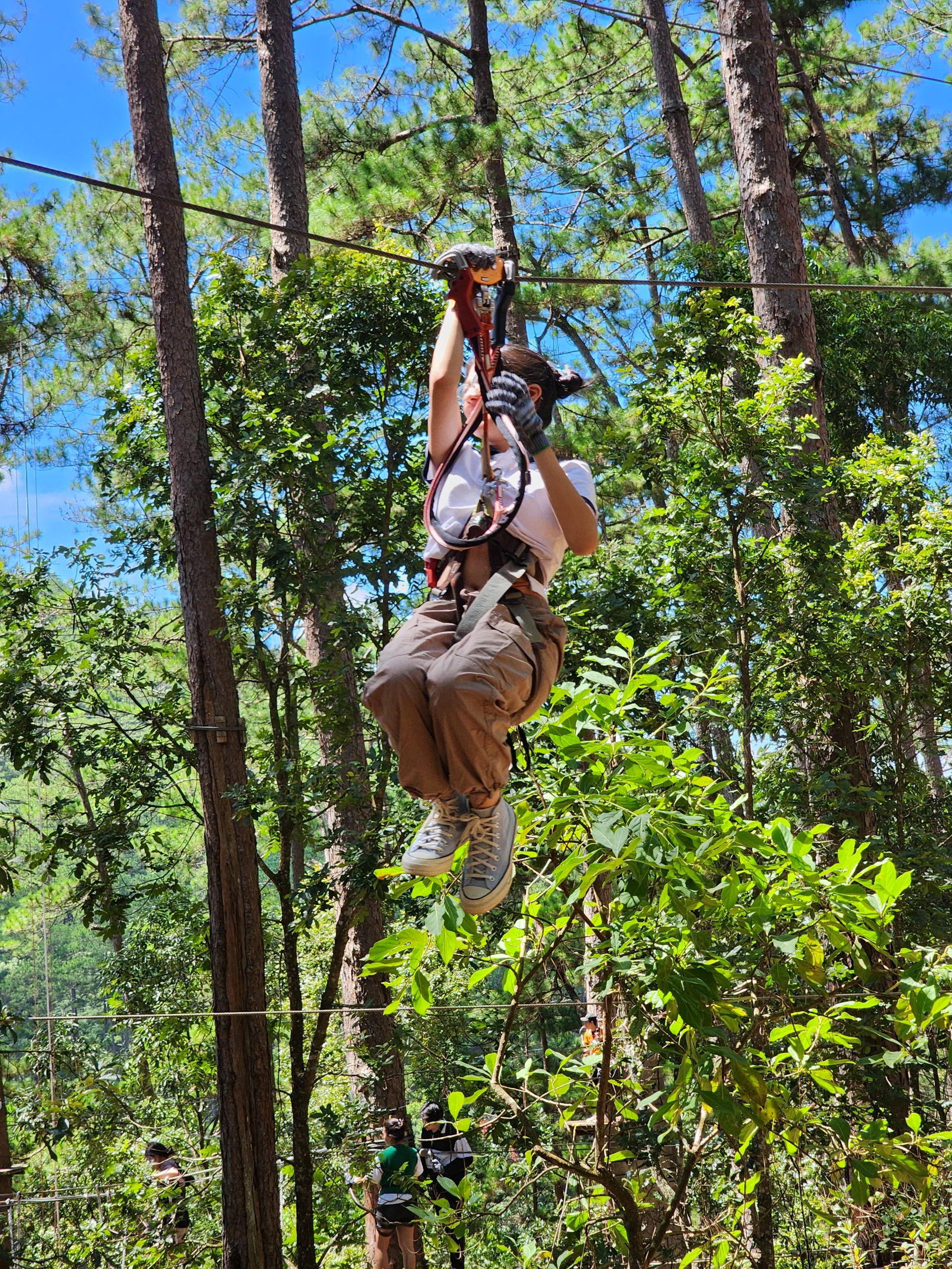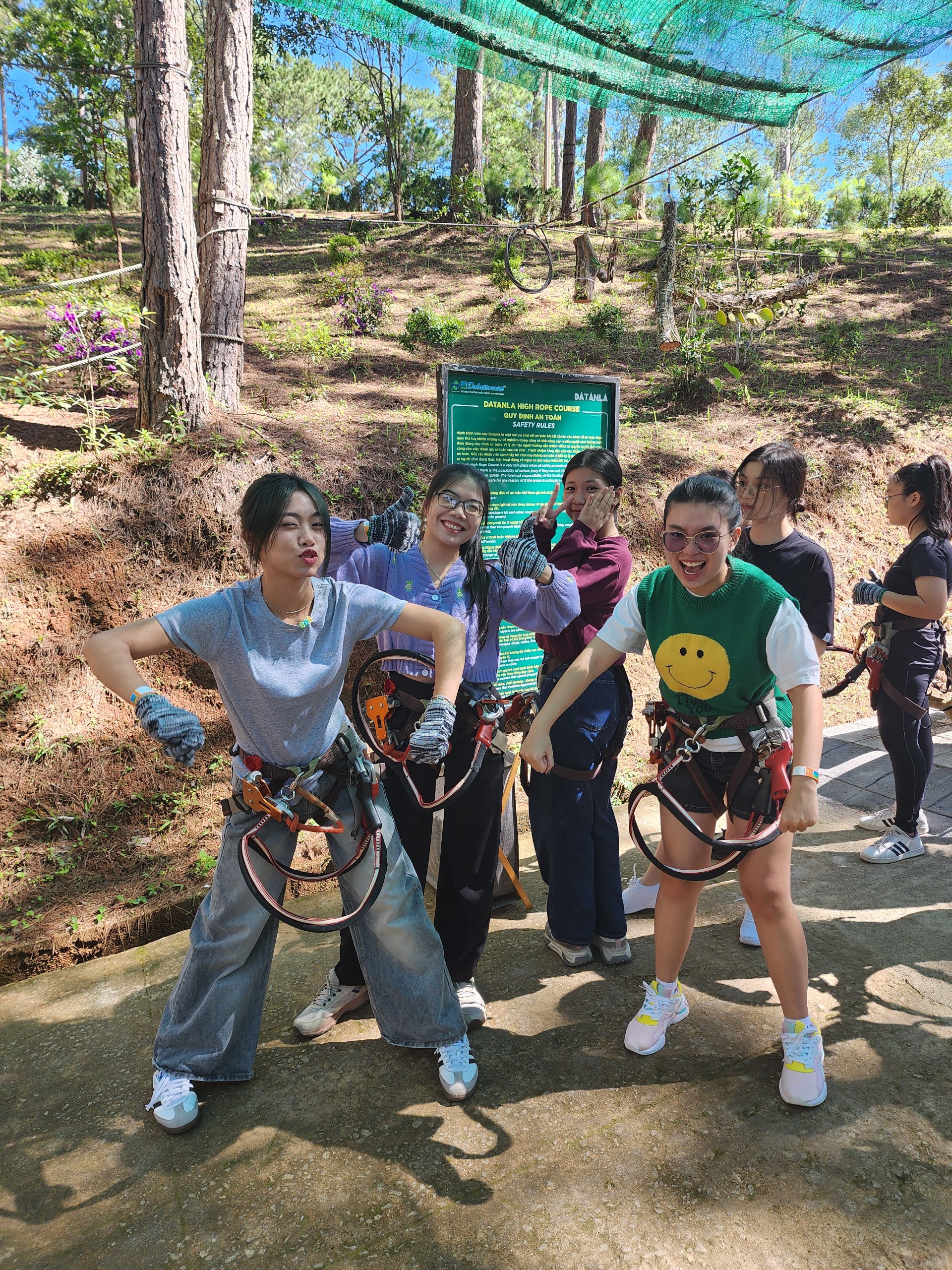 Ta đi nhà thờ Domaine de Marie chụp hình với khuôn viên siêu đẹp, ta mua đồ lạnh ủng hộ các bạn trẻ nội trú người K’Ho trang trải đời sống; ta đi trượt zipline cực kì phấn khích ở khu Datanla, lần lượt vượt qua Xanh lá 1, xanh lá 2, rồi Cam, rồi Xanh dương, rồi Đen. 3 bạn trong đoàn (cùng anh hướng dẫn viên) đã xuất sắc vượt qua vòng Đen, còn lại thì rụng như sung, phải nhờ giải cứu