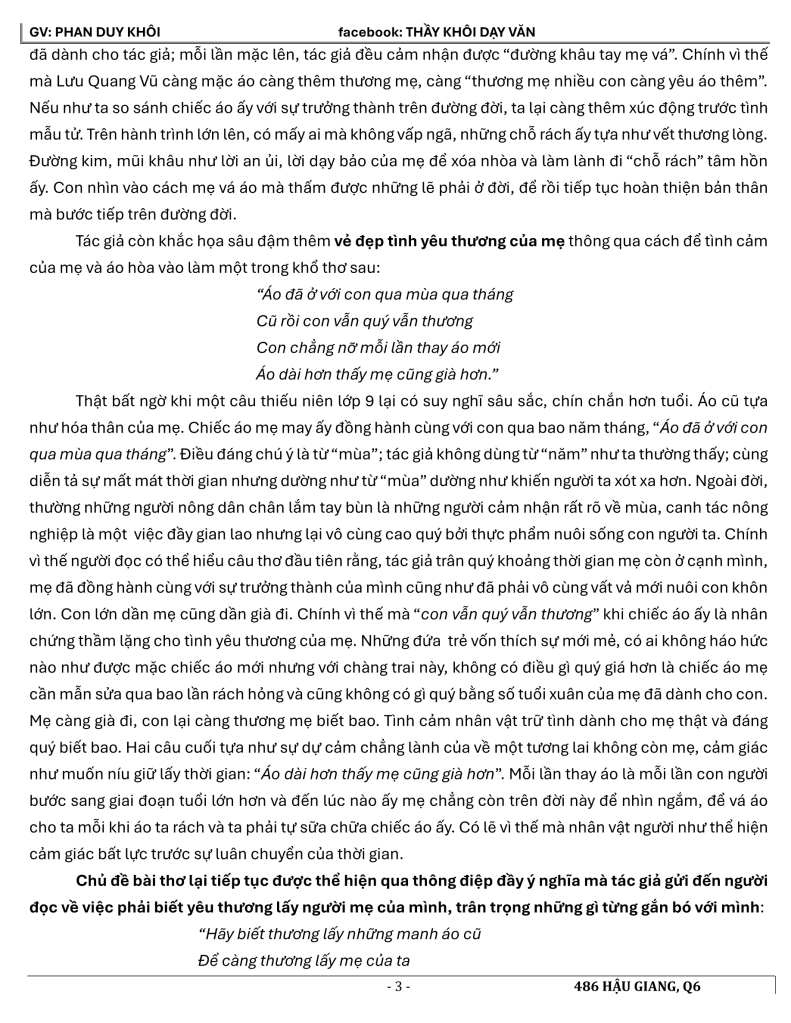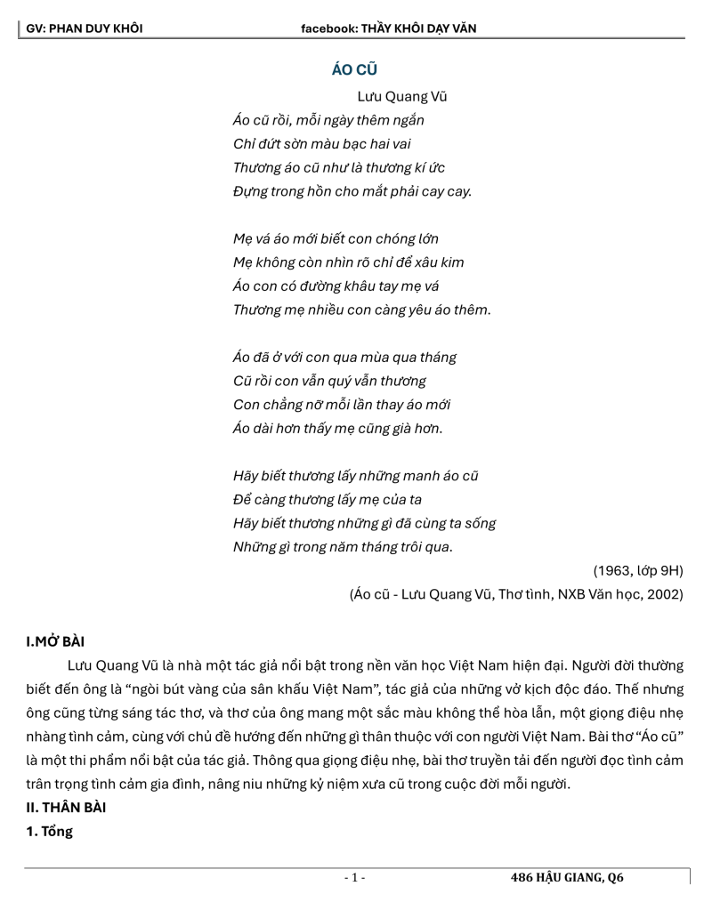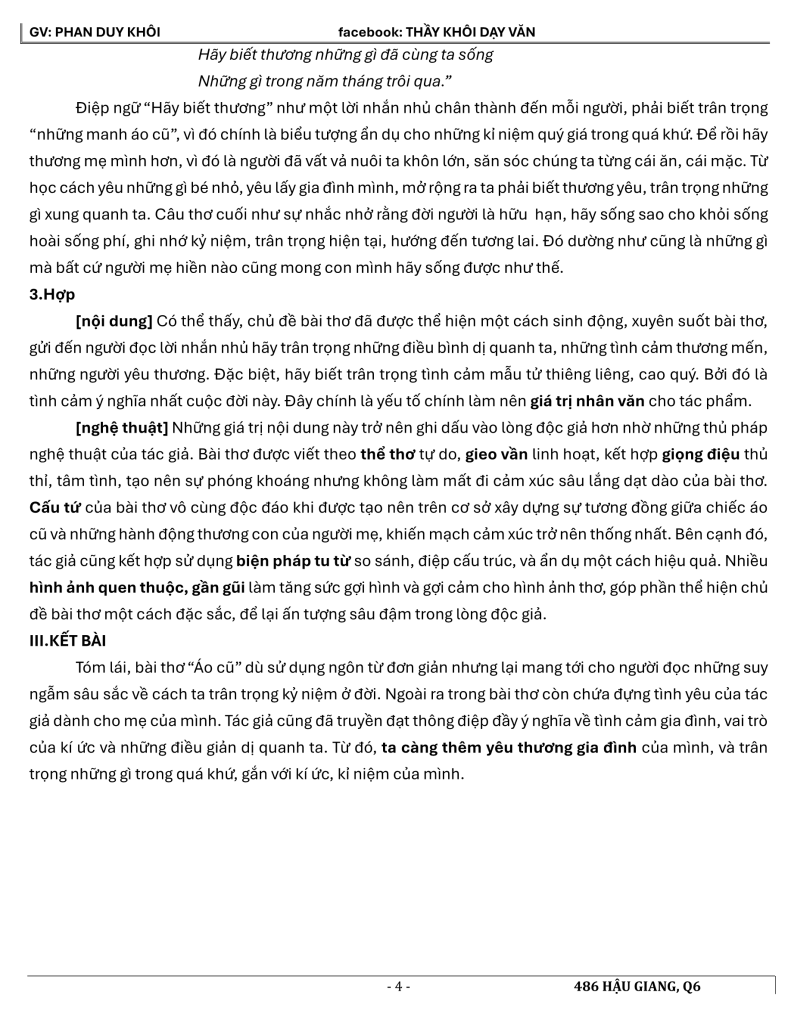 - Đề: Viết đoạn thơ phân tích chủ đề bài thơ Áo cũ (Lưu Quang Vũ)