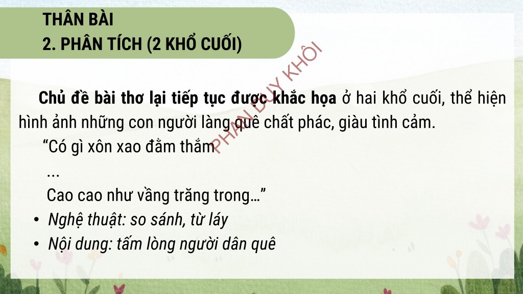 - Đề: Viết đoạn văn phân tích hình ảnh người mẹ trong bài thơ Đường về quê mẹ (Đoàn Văn Cừ)