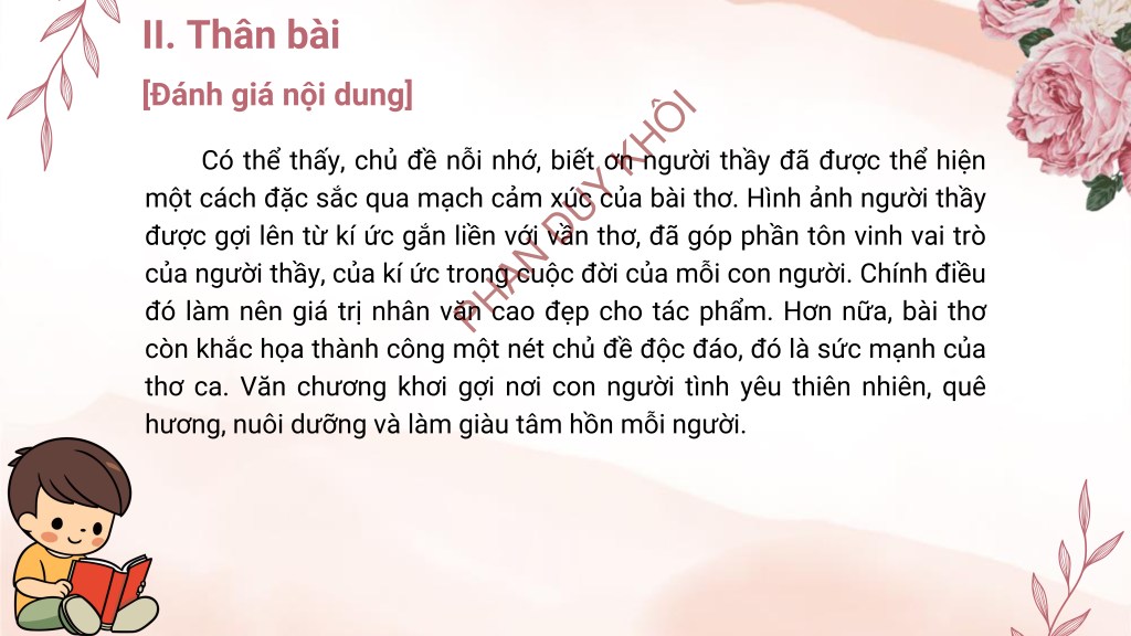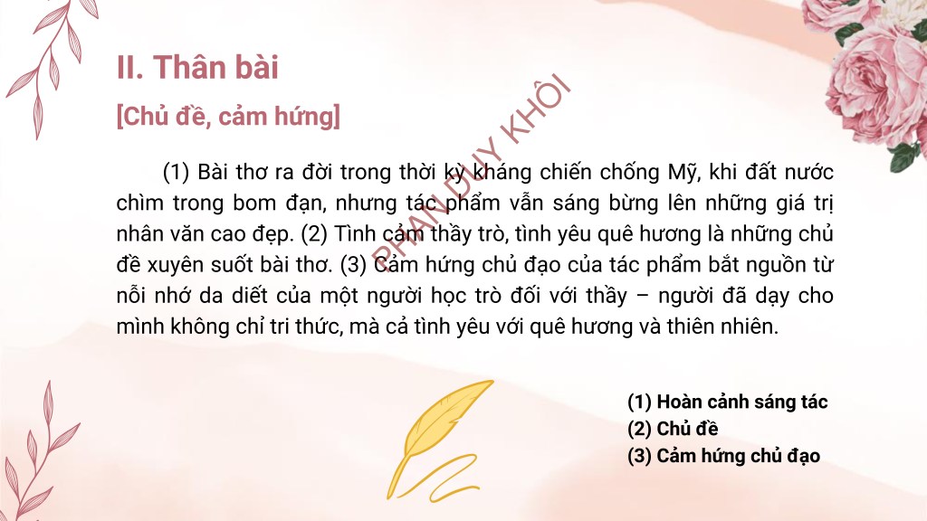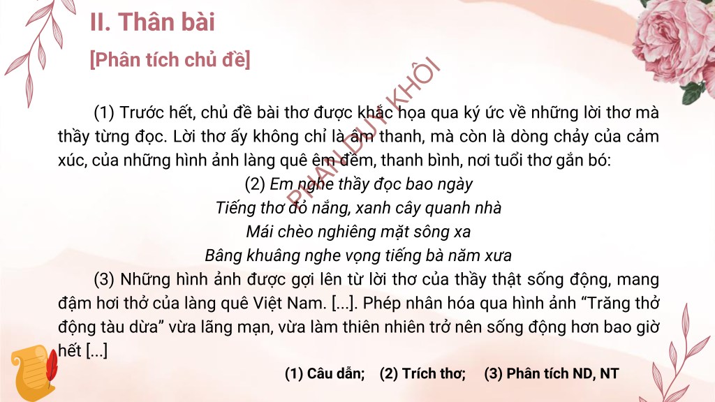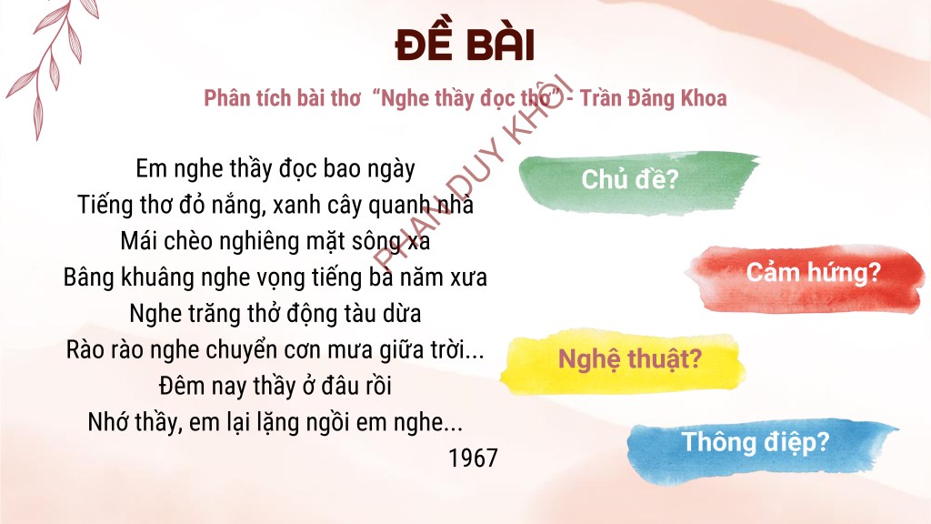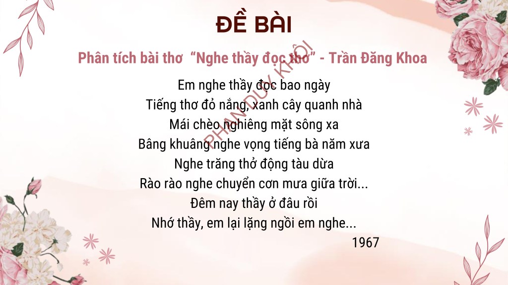 - Đề: Viết đoạn văn phân tích chủ đề của bài thơ Nghe thầy đọc thơ (Trần Đăng Khoa)