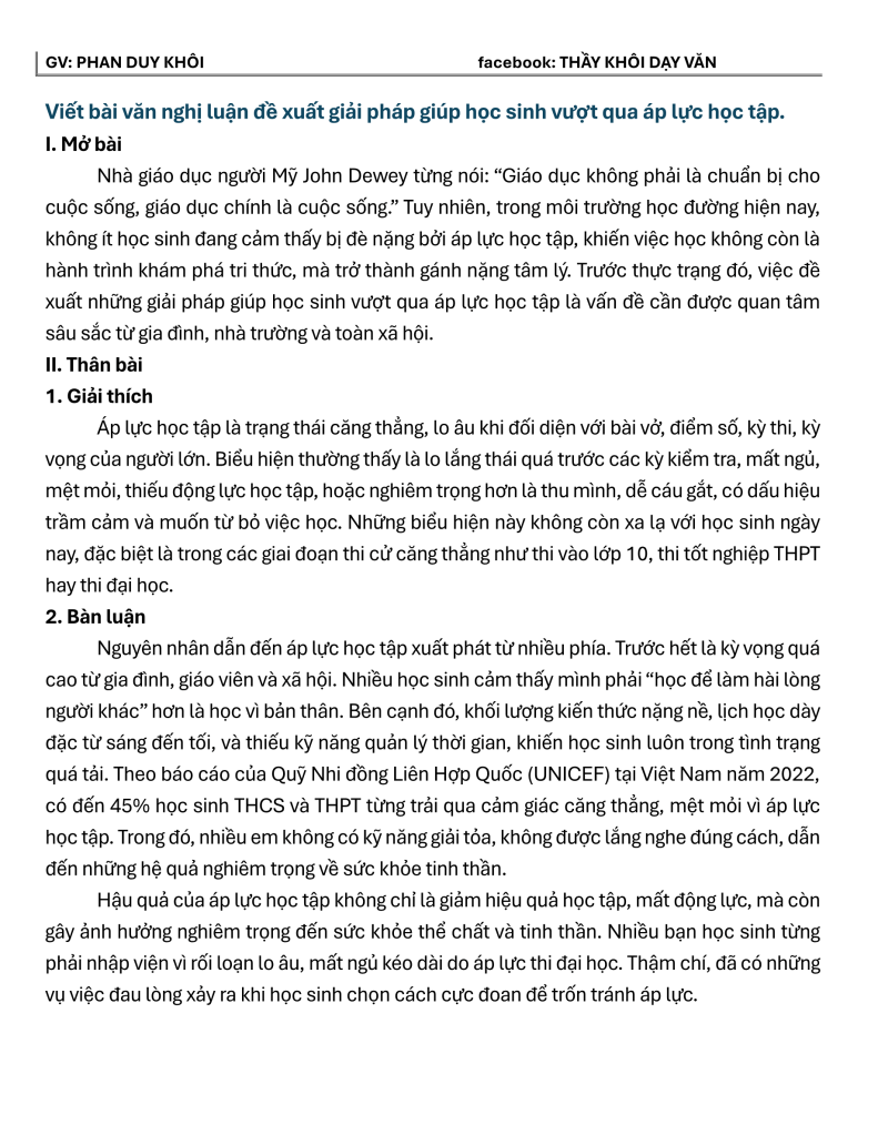 Đề 21. Viết bài văn nghị luận đề xuất giải pháp giúp học sinh vượt qua áp lực học tập.