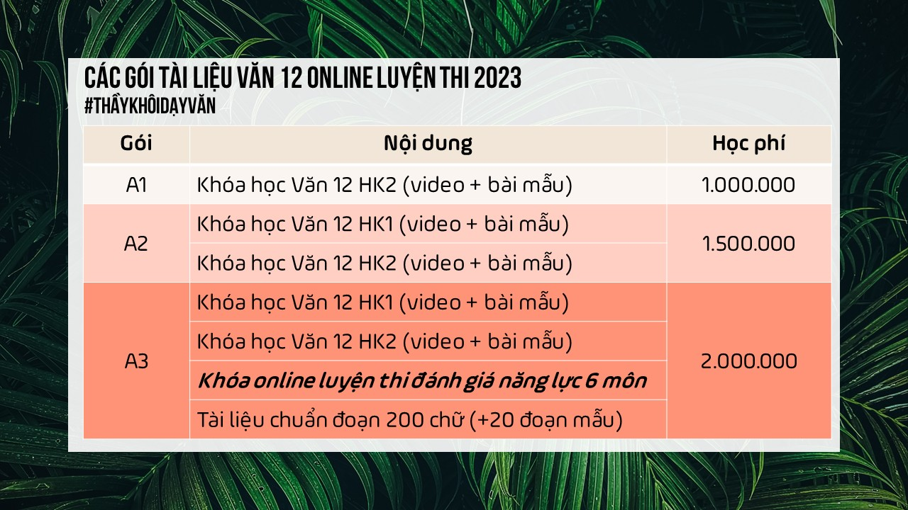 Thầy Khôi mở đăng kí các gói tài liệu-bài giảng Văn 12. Các bạn có thể xem và chọn gói phù hợp với mình nhé ^^